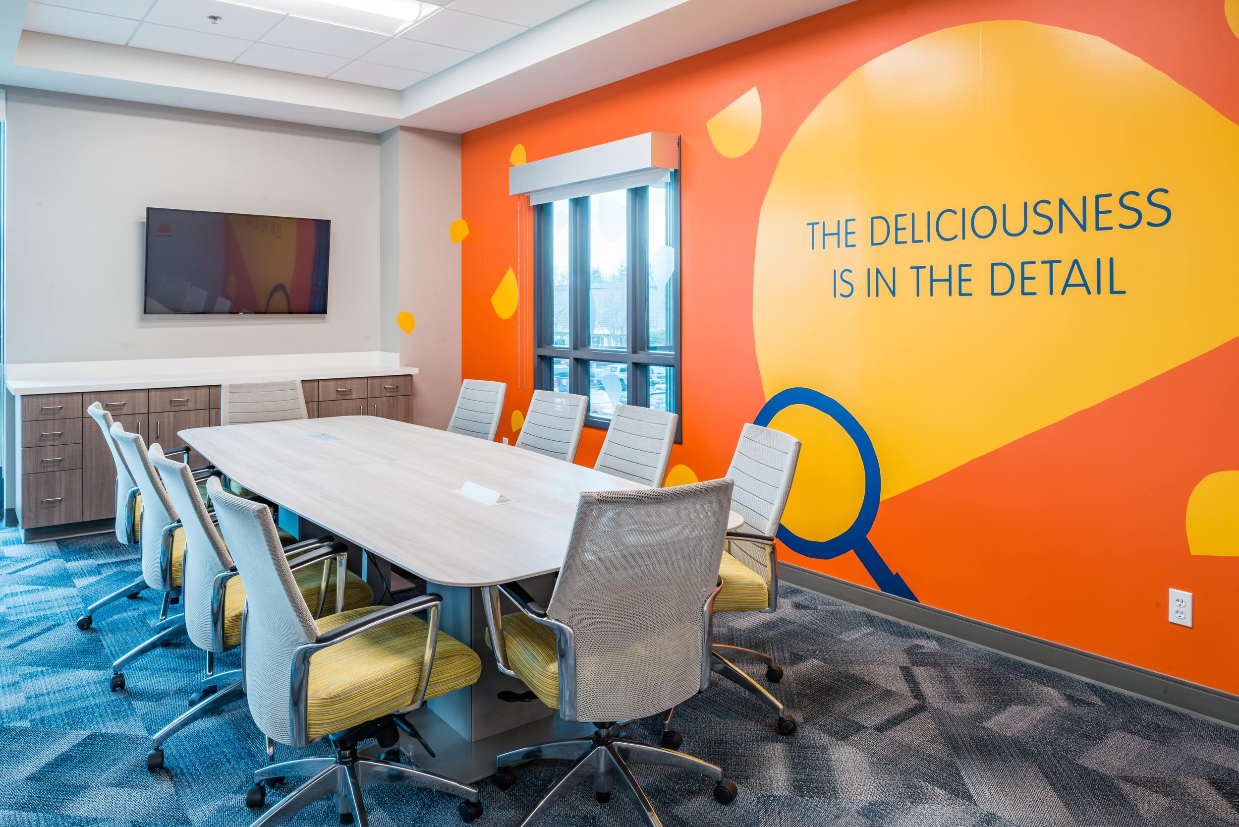 Once the permanent building renovation was complete, MGC transitioned staff back into the fully modernized headquarters and began an extensive interior and exterior overhaul of the temporary space. Both facilities were completely reconfigured to reflect a contemporary corporate environment, with perimeter offices featuring floor-to-ceiling glass walls, interior conference and meeting rooms, reception areas, break spaces, large open cubicle workstations, and a commercial kitchen. This phased approach showcased MGC’s ability to manage complex schedules, minimize downtime, and deliver high-quality commercial spaces tailored to client needs.