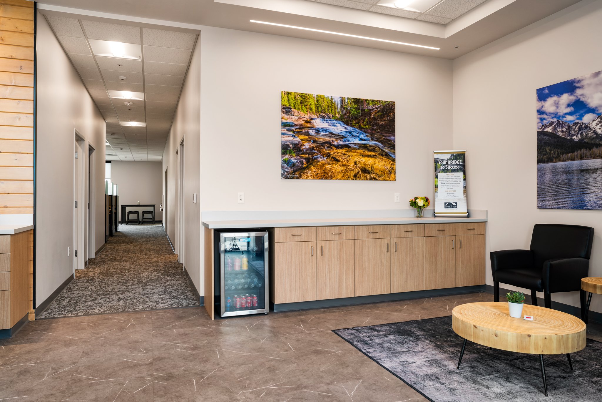 Mark Guho Construction, a trusted commercial general contractor in Boise, Idaho, completed a 4,210-square-foot tenant improvement for Silver Bridge CPA. The office was designed to balance functionality with a professional, polished atmosphere that reflects the firm’s brand and supports both client interaction and internal collaboration.